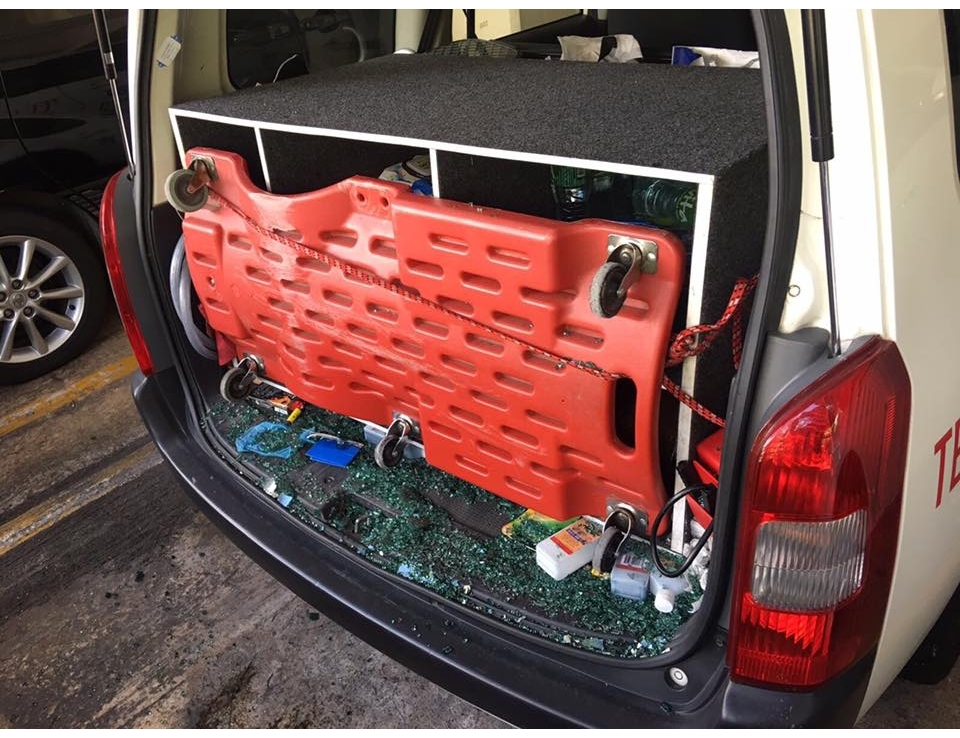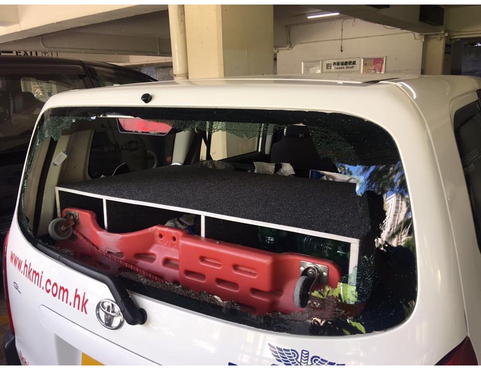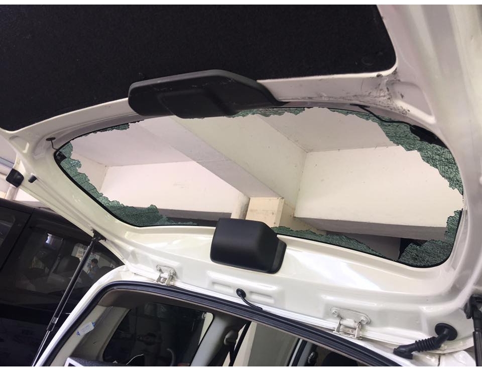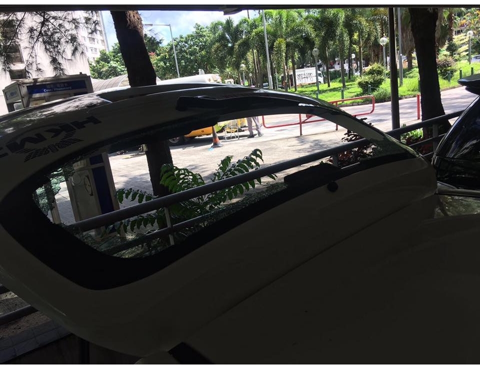 今晨7月13日上午9:45 ,同事到停車場取車,發現車尾的玻璃被人打爛。