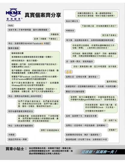 私人買賣 必須核對車輛登記文件